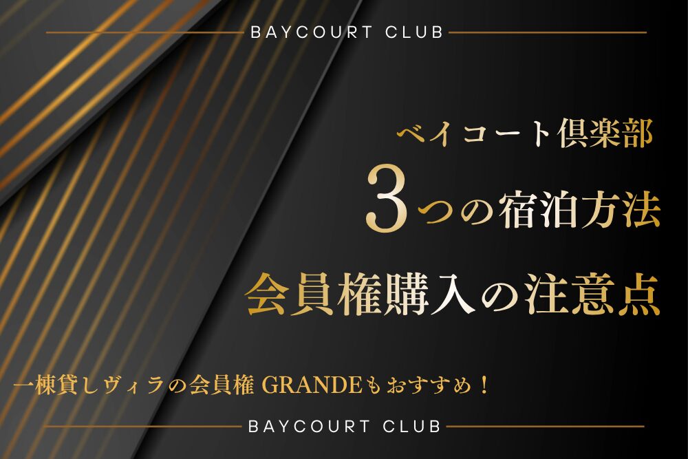 本章では、ベイコート倶楽部に宿泊する方法として、自身が会員権を購入してメンバーになる方法と、会員権を購入せずに宿泊する方法を紹介します。